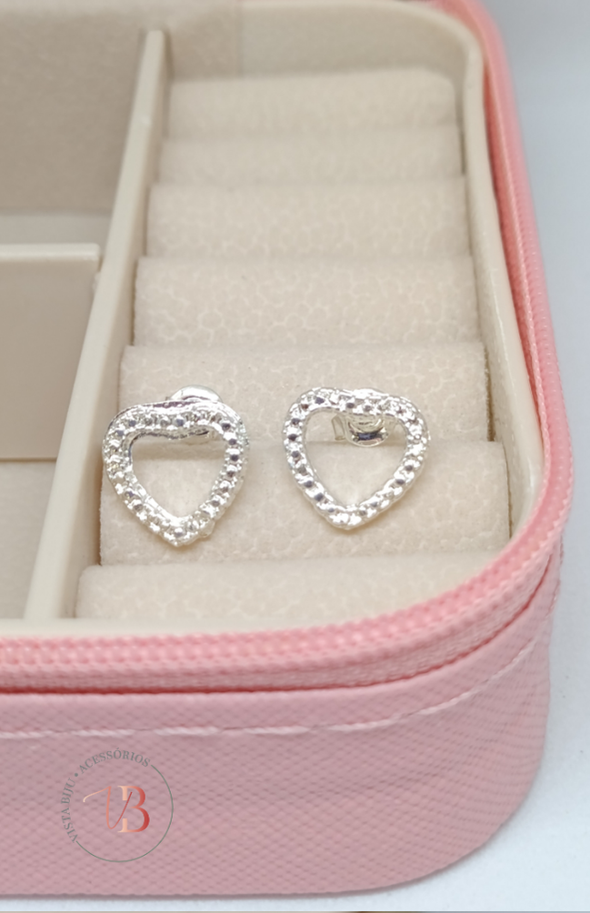 Brinco Prata Coração Vazado com Bordas Trabalhadas – Semijoia Antialérgica
