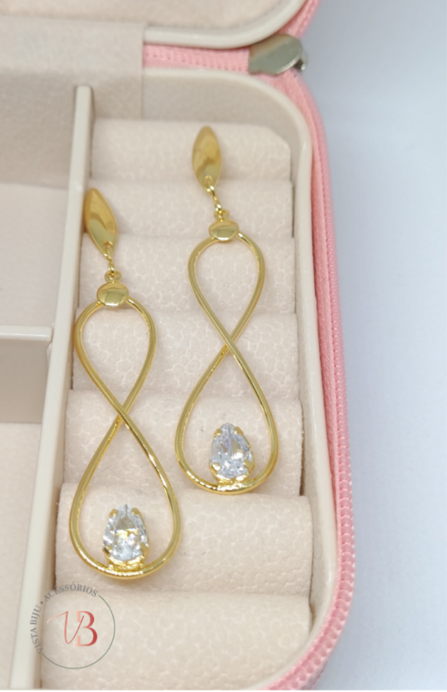 Brinco Infinito com Pingente de Zircônia em Gota – Banhado a Ouro (Semijoia Antialérgica)