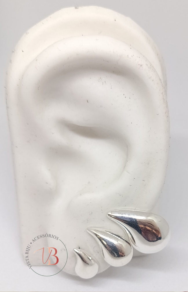 Brinco Gota Lisa – Trio de Semijoias Banhadas a Prata