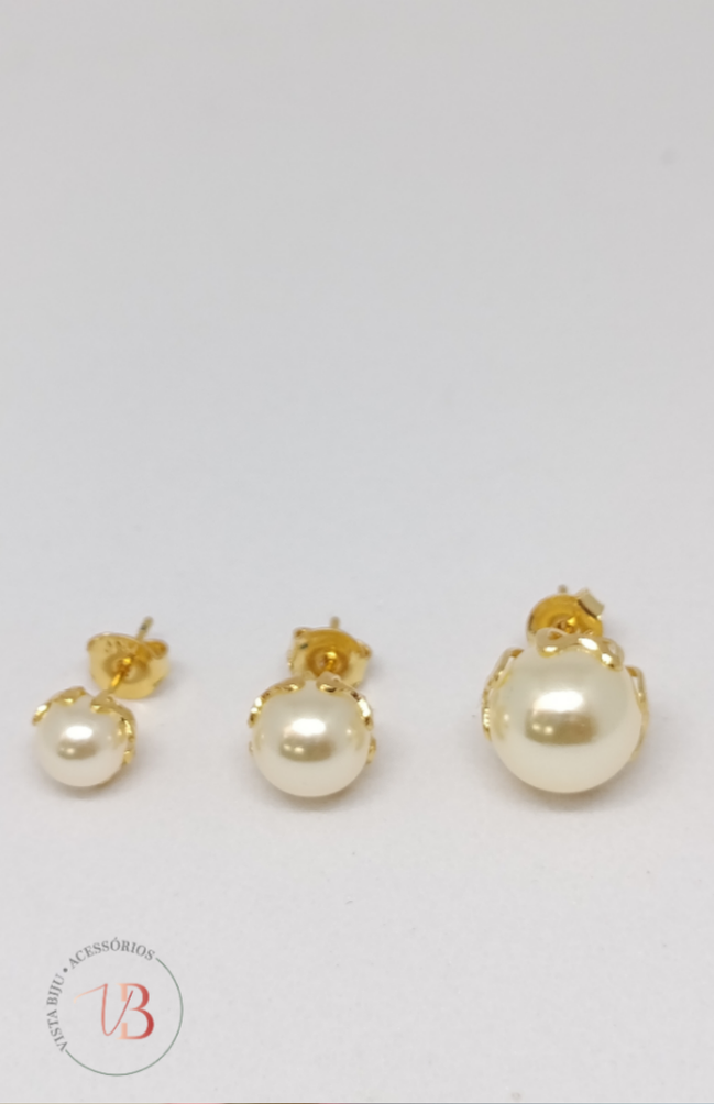 Brinco Trio Três Graças – Pérola com Coroa Redonda – Banhado a Ouro (Semijoia Antialérgica)