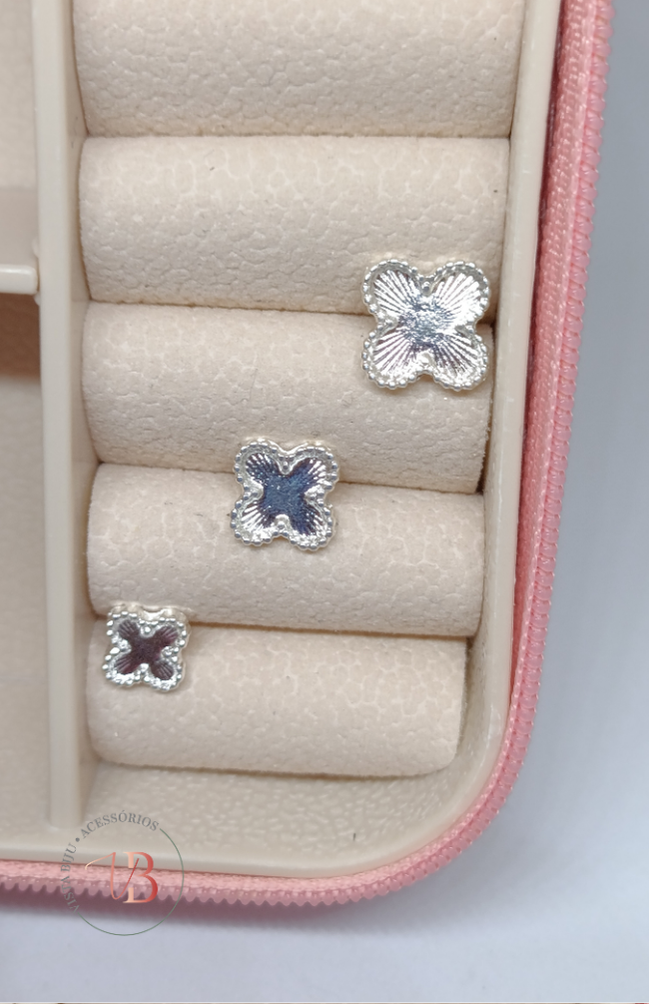 Trio de Brincos Trevo Trabalhado Banhado a Prata