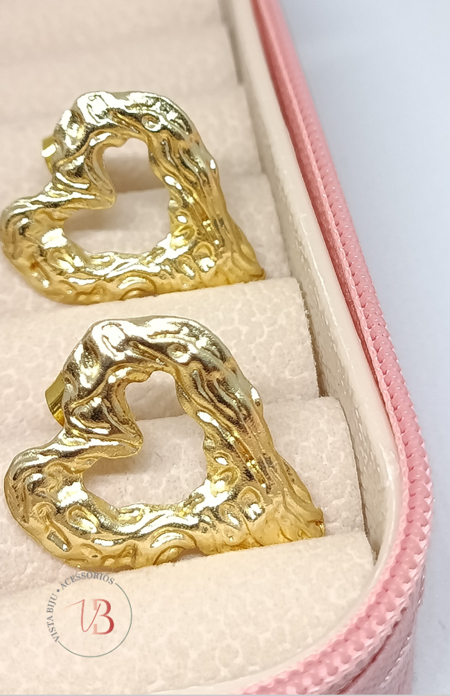 Descrição do Produto — Brinco Coração Orgânico Banhado a Ouro
