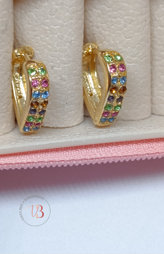 Argola Cravejada Colorida – Banhada a Ouro (Semijoia Antialérgica)